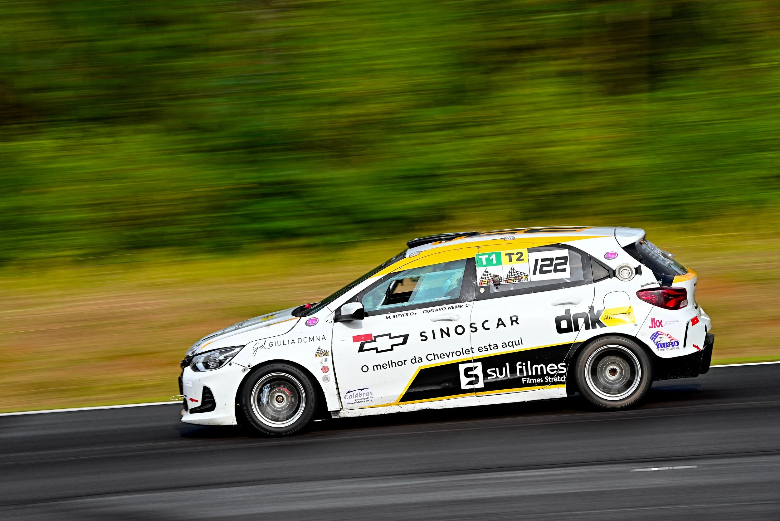 Apesar de alguns percalços, os pilotos Gustavo Weber e Marcelo Steyer conquistaram pódio duplo no último fim de semana no Autódromo Internacional de Tarumã, em Viamão (RS). Pela terceira etapa do Campeonato Gaúcho de Super Turismo (CGST), a dupla recebeu a bandeirada em segundo lugar na classe T2 a bordo do Onix #122, e na terceira colocação na classe T1. No momento, os pilotos são líderes absolutos na categoria T2 e podem ser campeões por antecipação na quarta etapa em Guaporé (RS), no dia 4 de outubro.